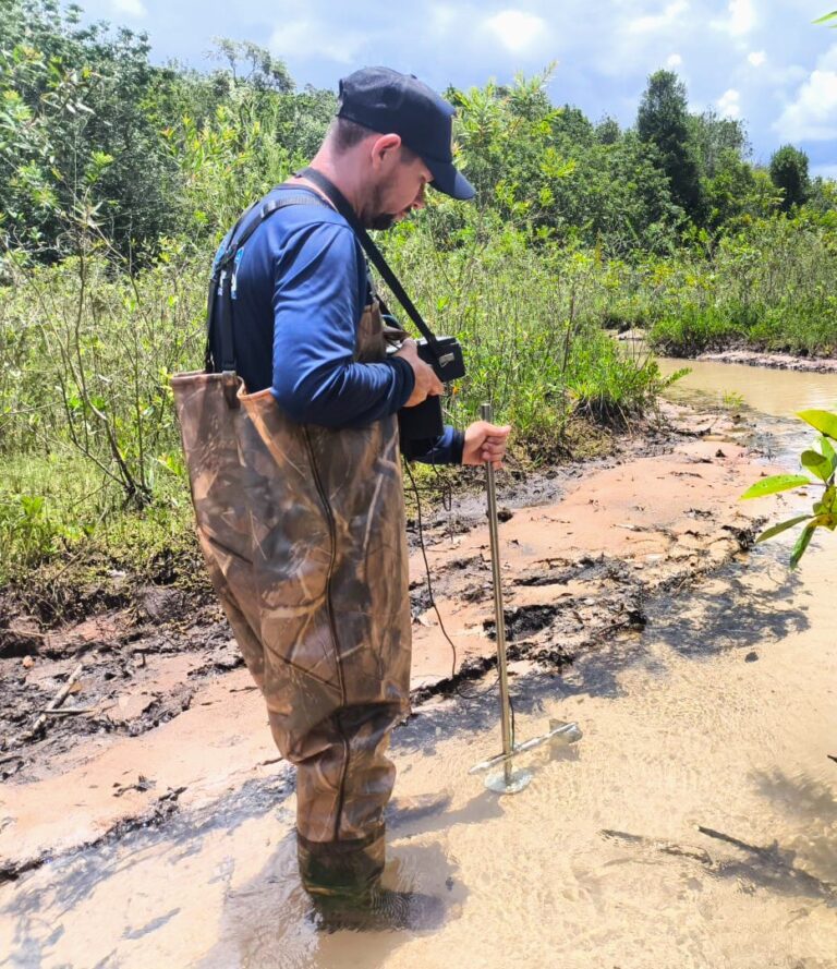 Laudo de medição de descarga líquida cálculo da contribuição da bacia, cálculo de vazão de projeto, medição in loco.